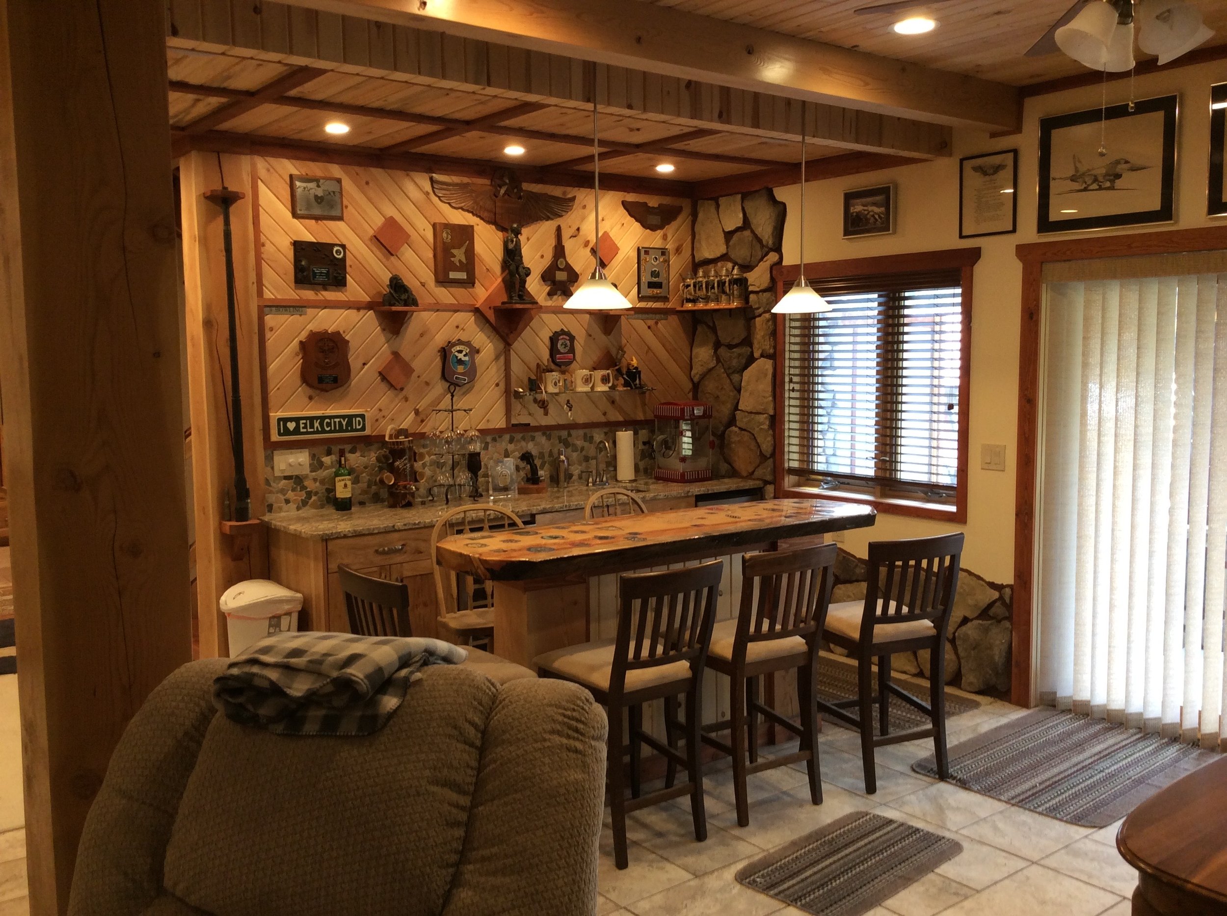 The Bnb has an open kitchen/bar/living room, outdoor kitchen, downstairs living room, small workout area, laundry room, and bar downstairs.