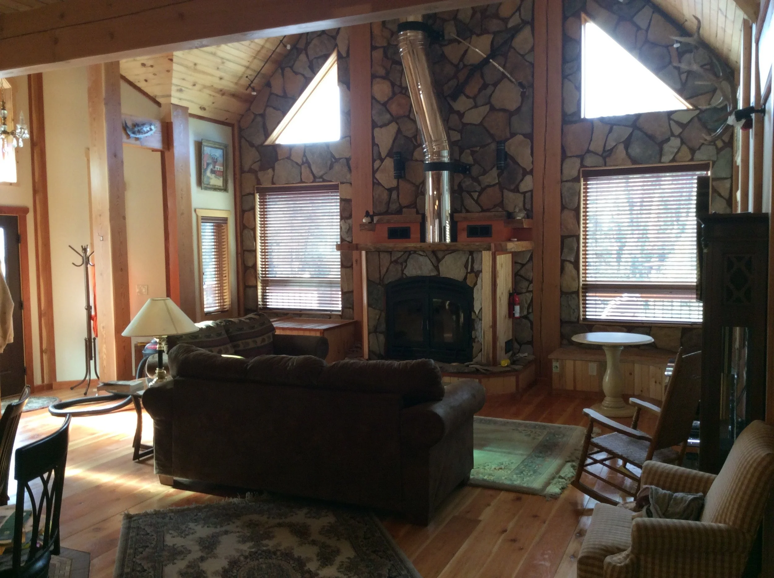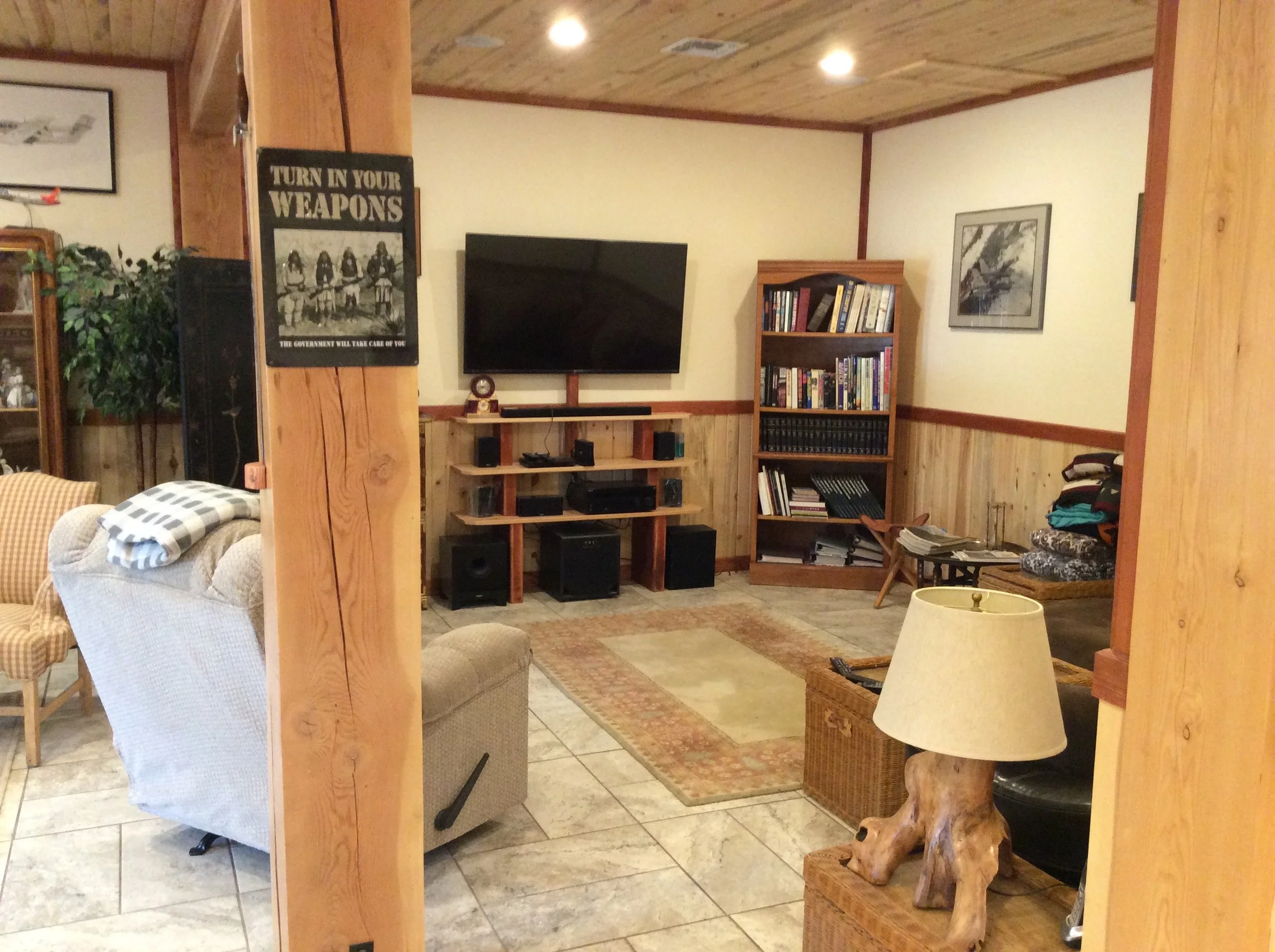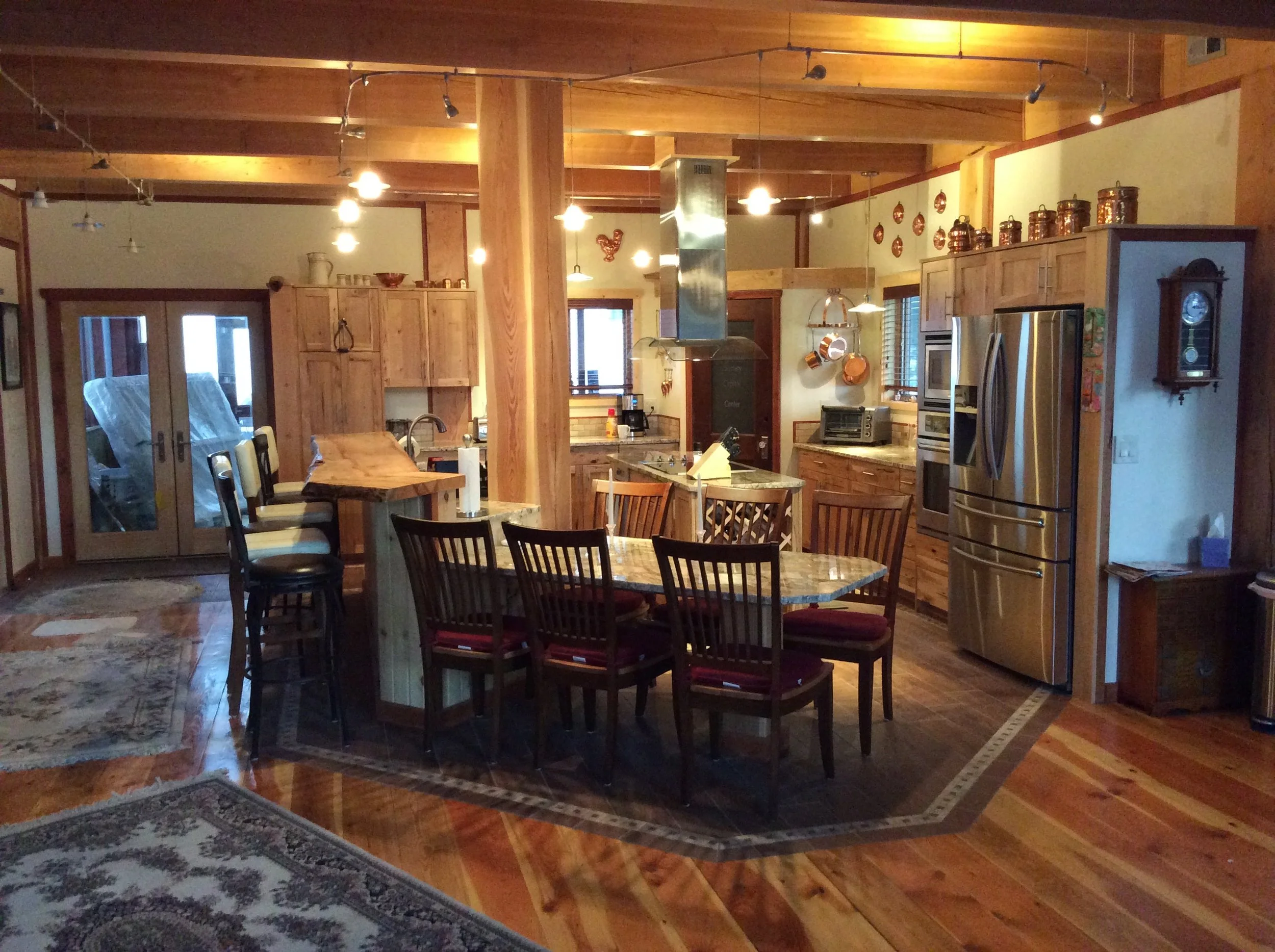 A few guys and I built this house from scratch starting in 2010, and would be more than happy to tell you the whole story. Every piece of timber was cut here in Elk City. Every piece of trim was hand sanded and stained. And every piece of flooring was joined together by hand.